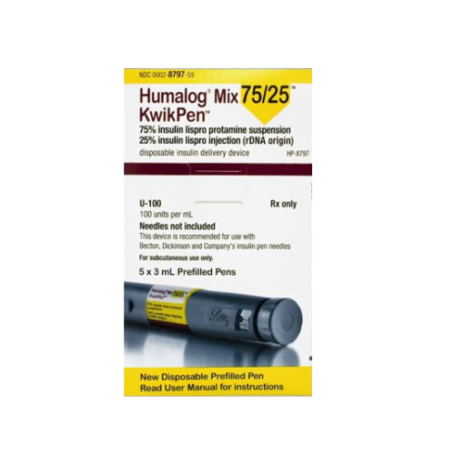 - Manufacturer prescribing information is available here: Lilly Humalog Mix75/25 USPI PDF
